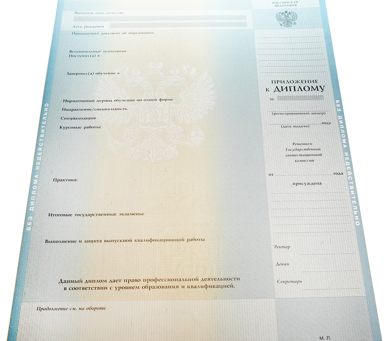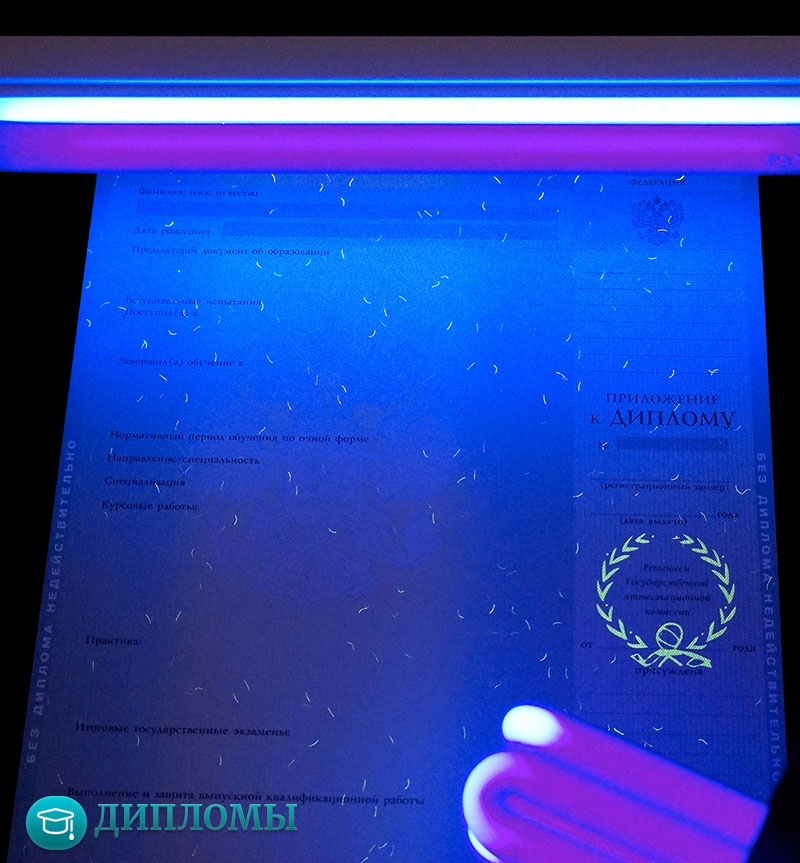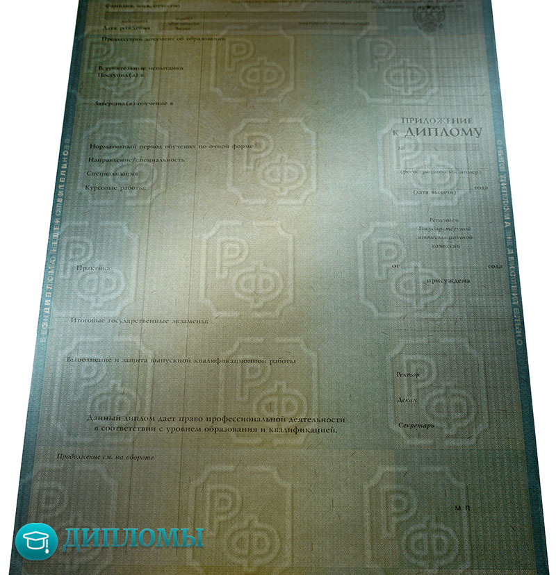 Ваш диплом о высшем образовании не будет подделкой. Мы отпечатываем документы на бланках государственного образца и типографским методом, с соблюдением всех норм заполнения. Более того, наши документы имеют все знаки защиты, такие как - водяные знаки, защитные сетки, микрошрифт, матовый оттенок краски и т.д. Такой бланк спокойно пройдет проверку на подлинность в лучах ультрафиолета или на копировальном аппарате.